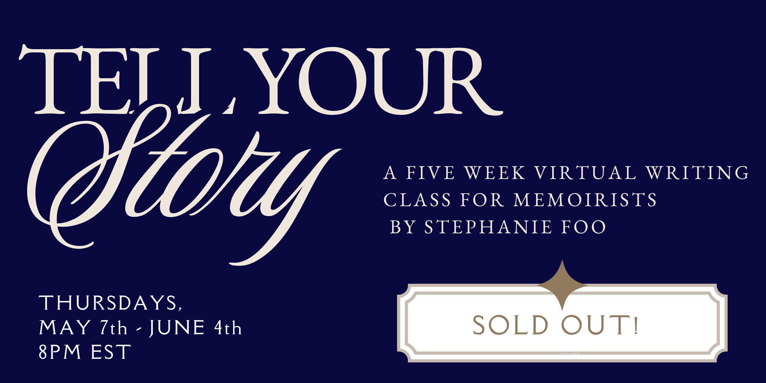 Featured sold out Tell Your Story Class $465.00 Admission to 5-week virtual writing class on Thursdays, May 7 through June 4, 2026, at 8pm EST. sold out Tell Your Story Class + Personal Writing Critique - SOLD OUT $665.00 Admission to Tell Your Story, PLUS:45 minute personal zoom edit with stephanieedited chapter from stephanie (3500 word max submission)