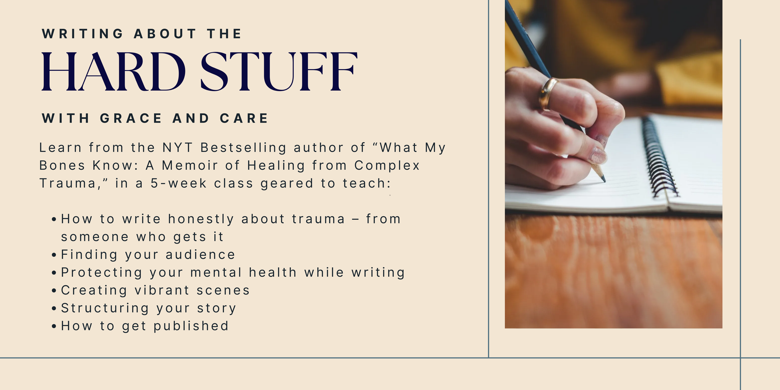 Admission to 5-week virtual writing class on Thursdays, May 7 through June 4, 2026, at 8pm EST.